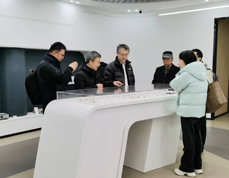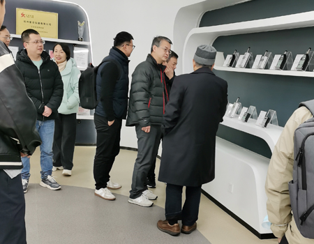 在公司展厅,领导一行参观了leyu.乐鱼仪器的发展史和产品陈列墙,详细了解了公司测量电容传声器的生产情况,以及新款的AWA6292多功能声级计销售状况。